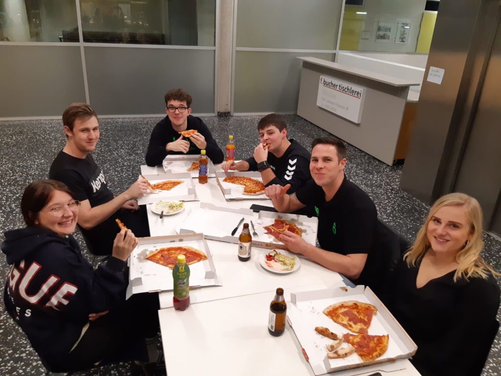 Eltern unter Federführung von Andrea Dürr mit Spaghetti und Kuchen. Am Abend gab es eine Runde Pizza von unserem Sponsor der Pizzeria Regina.